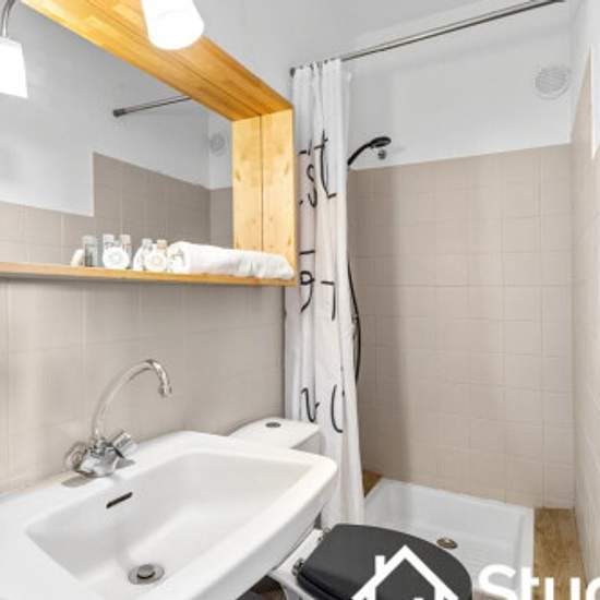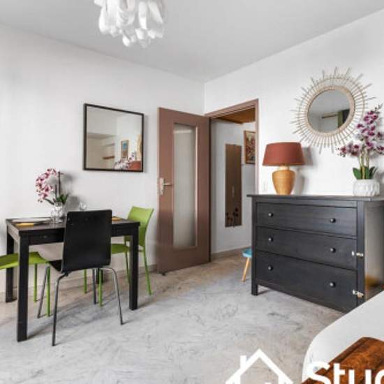 Découvrez ce studio agréable et bien équipé situé au deuxième étage d'un immeuble de Nice. Profitez de la vue sur la cour intérieure depuis le petit balcon équipé d'une table et de deux chaises. Avec une surface de 23 m², ce studio se compose de : - une belle pièce à vivre baignée de lumière avec un lit double 140 x 190 et un coin repas, - une cuisine séparée parfaitement équipée (machine à café, grille-pain, bouilloire, four micro-ondes, plaques de cuisson, réfrigérateur), - une salle de bain avec douche et WC, - aspirateur, sèche-cheveux, ...