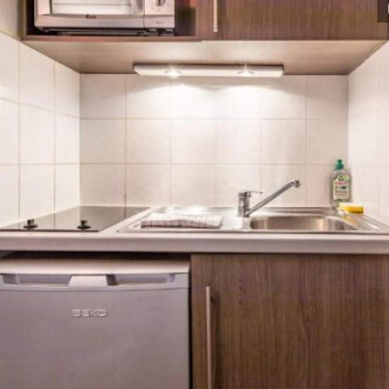 Le studio double de 19m² se compose d'un espace de vie avec un lit double, d'une salle de bains, d'une TV LCD et d'une kitchenette. La cuisine dispose d'un réfrigérateur, de plaques vitrocéramiques, d'un four à micro-ondes et d'une cafetière. La vaisselle est également fournie. Sanitaires : Douche, WC séparés Couchage : Lit double (140x200) Accès Wi-Fi gratuit dans l'appartement. La cuisine dispose d'un micro-onde, d'un réfrigérateur, de plaques vitrocéramiques, d'une hotte aspirante, d'une cafetière, d'une bouilloire et de tout ce dont vous...