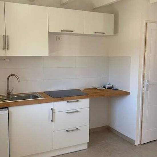 Appartement Nimes 2 pièce(s) 29.15 m2. Nîmes, sis 13 rue Descartes, à 14mn à pied de l'établissement d'Alzon, P2 en duplex dans petite copropriété. Appartement comprenant au rdc une pièce à vivre avec cuisine ouverte, plaque de cuisson et frigo top, un wc. A l'étage une chambre avec salle d'eau ouverte. Climatisation. Loyer 552€ c.c (communs et eau froide)