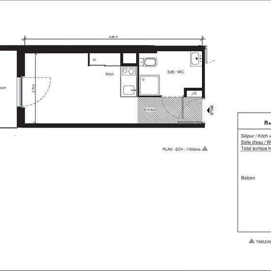 Résidence idéale pour les étudiants et les jeunes actifs ! Dans notre nouvelle résidence proche du site Hoche de l'Université de Nîmes, de l'Ecole supérieure du professorat et du centre hospitalier des Fransiscains, et profitez de ses multiples services (locaux vélos, laverie, conciergerie*). Il se compose d'une entrée, d'une pièce de vie avec cuisine équipée (évier inox, plaque 2 feux, hotte, meubles hauts et bas,frigo table top) avec accès sur un balcon de 3.94m²et d'une salle d'eau aménagée avec WC. Louez un logement avec Elyade et bénéfi...