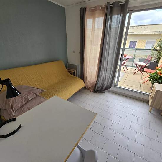 Studio lycée Dhuoda Location meublée, disponible de suite ! Nous étudions les dossiers de personnes sérieuses ( CDI, ou CDD , RSA avec garant physique ou Visale ). Joli studio de 15.57 euros, avec terrasse, bien équipé. Situé au 24 rue Dhuoda, juste en face du lycée, au 5e étage de la résidence Le Clovis. À proximité directe du Lycée Dhuoda, Greta, et autres établissements scolaires. À seulement 10 minutes à pied de la gare. Ce studio meublé offre tout le confort moderne: Kitchenette équipée, chauffage électrique, menuiserie double vitrage, ...