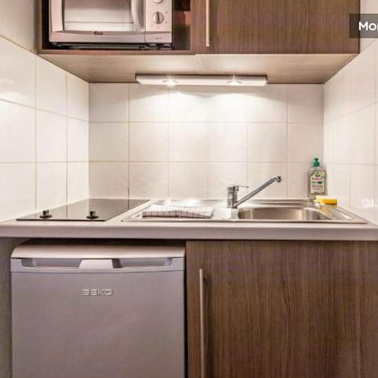 The 19sqm double studio consists of a living area with a double bed, a bathroom, an LCD TV and a kitchenette. The kitchen has a fridge, ceramic hob, microwave and coffee maker. The dishes are also provided. Sanitary: Shower, Separate WC Sleeping: Double bed (140x200) Free Wi-Fi access in the apartment. The kitchen has a microwave, fridge, ceramic hob, extractor hood, coffee maker, kettle and everything you need to cook. The apartment is also equipped with LCD TV and free internet access. Final cleaning is included in the price. Pets are allo...