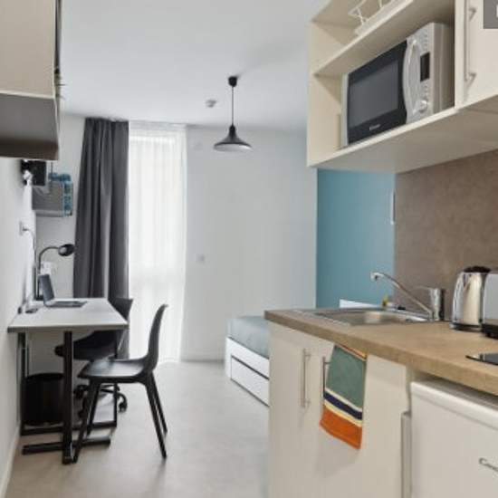 Les studios de la résidence sont de véritables logements, spacieux et lumineux, aménagés avec goût, tout en vous offrant de nombreuses prestations et des équipements de qualité (cuisine équipée, télévision, wifi, espace bureau...). Profitez d'un studio entièrement équipé de 18-19m², confortable et moderne. Idéalement agencé, vous y trouverez un grand lit simple (120x200), un espace de travail, une kitchenette avec plaque de cuisson, micro-onde, bouilloire, vaisselle et ustensiles, ainsi qu'une salle de bain privative. Également équipé d'une ...