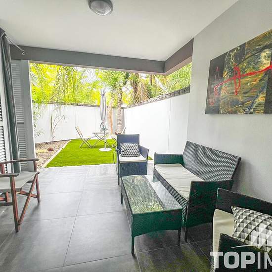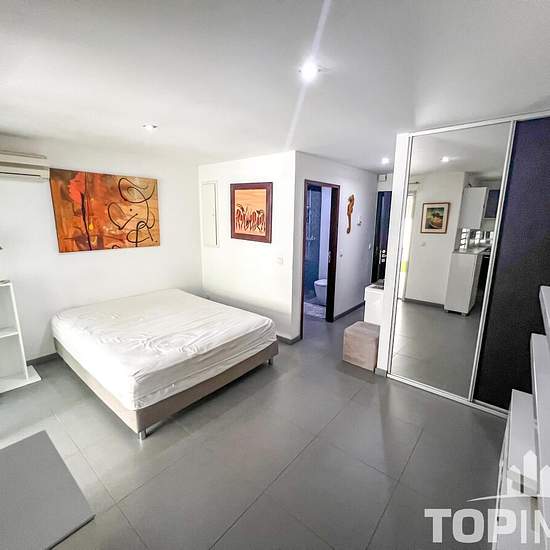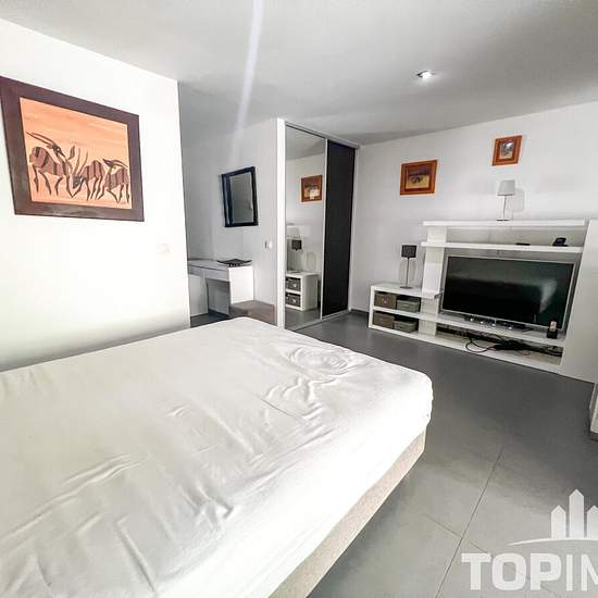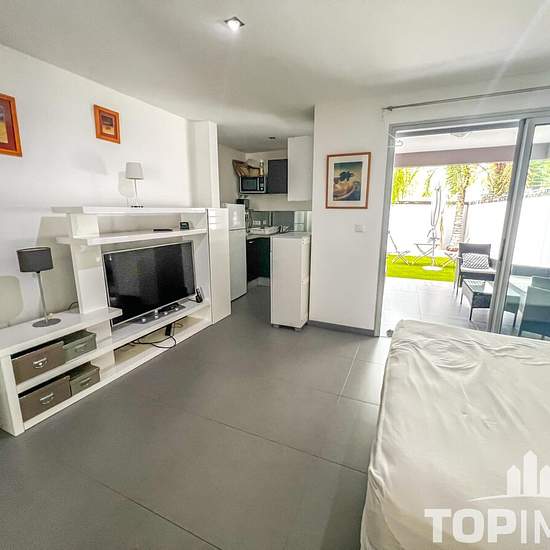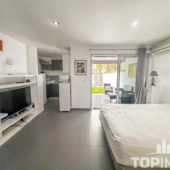 L'agence TOPIMMO vous propose à la location un charmant F1 situé dans une résidence sécurisée et moderne à Tina Golf. Le bien est entièrement meublé et comprend: un coin cuisine, une pièce principale avec placards, une salle d'eau avec un WC attenant, une buanderie avec lave-linge, sèche-linge et rangements. Jouissance d'une place de parking ainsi qu'un cellier. Les plus du bien : + L'accès à la piscine commune de la résidence. + La terrasse couverte de 12m² donnant sur un joli jardinet paisible. + Entièrement équipé (linge de lit, vaisselle...