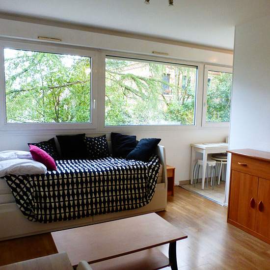 Au coeur du centre ville dans résidence avec ascenseur appartement au 1er étage meublé en très bon état offrant pièce principale, cuisine équipée, salle de bains avec WC. 1 cave et 1 place de parking en sous-sol. RER B ET UNIVERSITE A 5MM A PIED