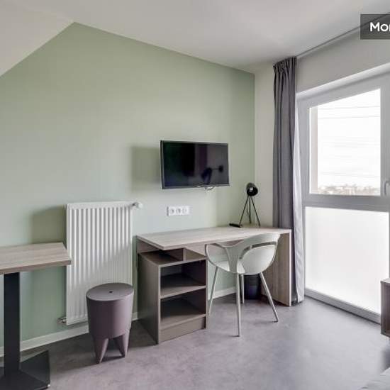 The residence offers tastefully furnished, contemporary apartments that are both spacious and bright. All apartments are fully equipped (kitchenette with crockery and appliances, office space) and offer top-of-the-range amenities. Terraces accessible to residents offer a panoramic view of the surrounding countryside seen from the 5th floor. With a reception open 24 hours a day, unlimited wifi, a gym and a sauna, your well-being and autonomy are guaranteed on a daily basis. The studio is fully equipped with a single bed (90*200). Parking is a...