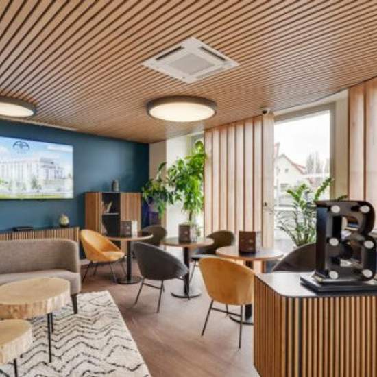 La résidence vous propose des appartements contemporains aménagés avec goût, à la fois spacieux et lumineux. Tous les logements sont parfaitement équipés (kitchenette avec vaisselle et électroménager, espace bureau) et offrent des prestations haut de gamme. Des terrasses accessibles aux résidents offrent un panorama sur les paysages environnants vue du 5ème étage. Avec une réception ouverte 24h/24, le wifi illimité, une salle de sport ou encore un sauna, votre bien-être et votre autonomie sont assurés au quotidien. Le studio est entièrement ...