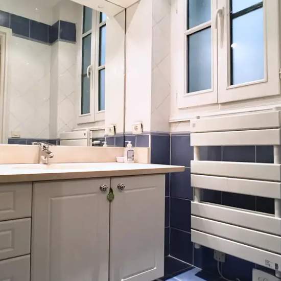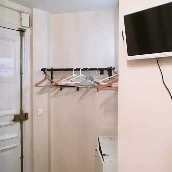 This studio apartment available to rent is located in Paris's central district, Lourve. The cozy 16 m² studio has polished wood flooring and comes furnished with a bunk bed, fold-out table, and a flat-screen TV. For storage, you have a built-in clothing rack. There is stylish kitchenette with a mini refrigerator, 2-burner stove, and cupboards. The bathroom is quite spacious and also comes with additional under-sink storage. On Rue de la Cossonnerie, you are living in an upscale area in the 1st arrondissement. You are surrounded by elegant re...