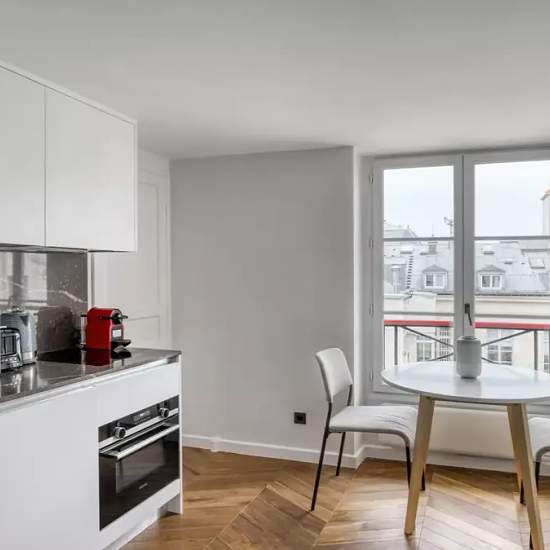 Furnished studio apartment for rent in Paris. The property is on the 5th floor. Landlord policies Overnight guests permitted: no Pets: Some pets are allowed for some properties. Be sure to include your animal friend in your booking request in order to fin a Pet friendly property for you (extra fee) Possibility of domiciliation: no CAF/APL: no Check-in/out: Check-in hours: 16:00 - 22:00 Check-out hours: before 11:00 Required documentation: ID / Passport Your landlord speaks: French, English, German, Greek Your landlord does not live on t...