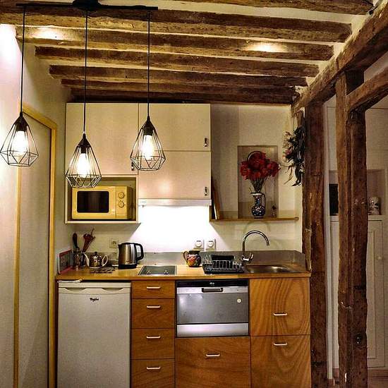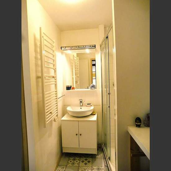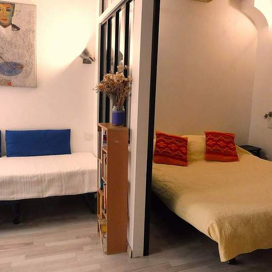 Charming and comfortable apartment in the heart of Paris Nice studio in a typical building of old Paris. Large studio of 25 m, on the 4th floor, (without elevator) on the courtyard. It is calm and clear but without direct light. Arrangement: entrance, American kitchen, lounge area with sofa bed for sleeping. Independent bathroom (shower, washbasin). Alcove bedroom, with comfortable double sofa bed. Internet: You get an internet connection only by cable, free and unlimited. ORGANIZATION: The studio has a small entrance to put all your l...
