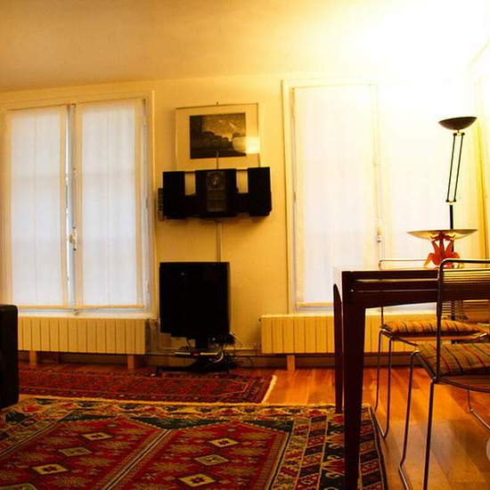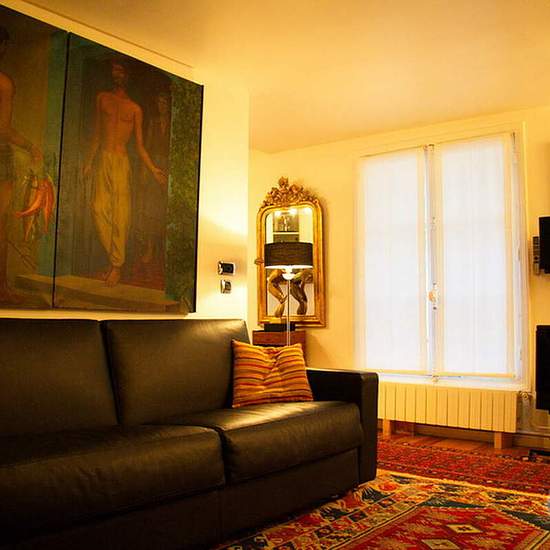 Very original, attractive and comfortable one-bedroom rental flat in the heart of Paris - its 2nd district on Boulevard de Bonne Nouvelle. The apartment is located on the first French floor of a building (built in 1900) without elevator. The apartment offers a well-furnished living room, an equipped kitchen, a cozy bedroom and a bathroom. Surface - 50 square meters, maximum number of tenants - five persons. This is a very good option for a small company or a family vacation in Paris. The owner's demand: no pets. Charming living room with...