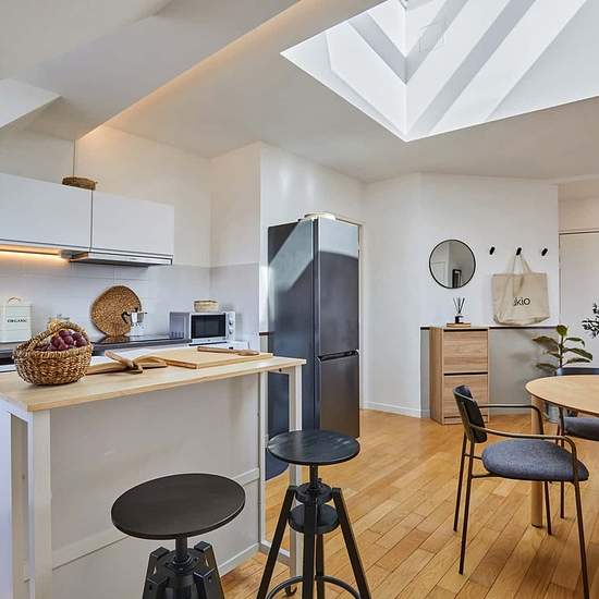 EN Notre mission est de permettre aux individus de s'immerger dans de nouveaux endroits en ayant un chez-soi où qu'ils aillent. Pour ce faire, nous fournissons des appartements entièrement meublés et équipés, conçus avec art, pour des séjours d'un mois ou plus. Nous sommes actuellement présents dans certaines des villes les plus importantes d'Europe. Magnifique appartement rénové et meublé situé sur le Boulevard Beaumarchais, dans le quartier des Archives, dans le 3e arrondissement. Il est situé au 8ème étage avec ascenseur, à proximité des ...