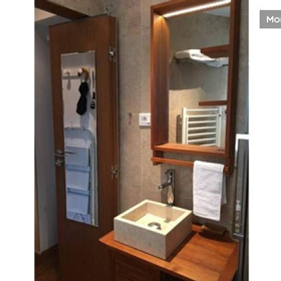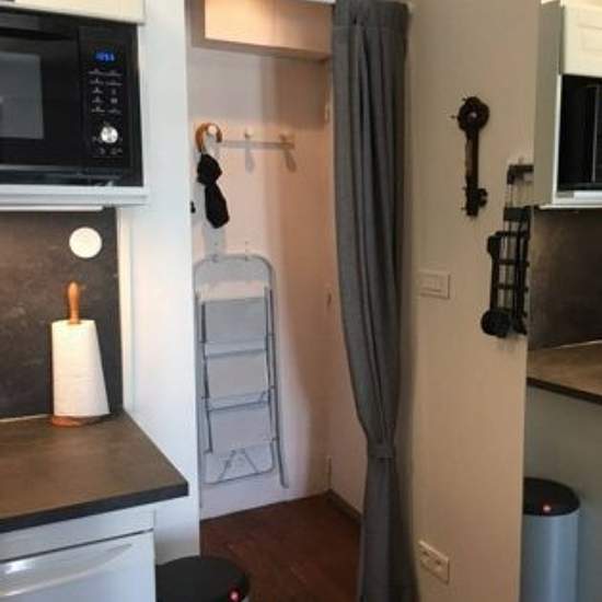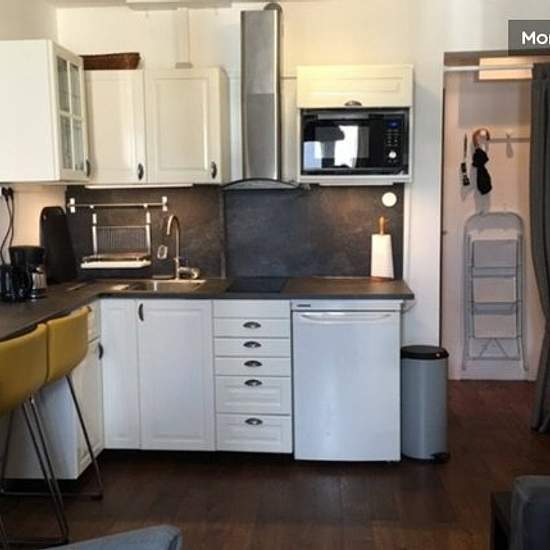Recently renovated studio apartment with roof view on the 6th floor with elevator. Open kitchen equipped with a combination microwave oven, grill and convection, hob, coffee maker, kettle and refrigerator with small ice compartment. Sofa bed 140x190cm for a daily bed, wardrobe and small workspace. The bathroom is equipped with a shower and a towel warmer. A Velib' station and the Bus 29 stop at one minute. Several metro stations are within a ten-minute walk. Services included in rent & charges: Water Electricity Heating Internet The secur...