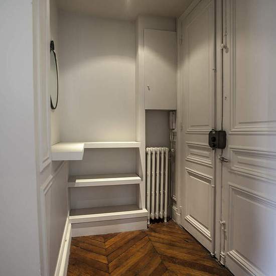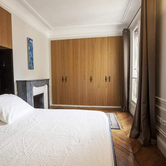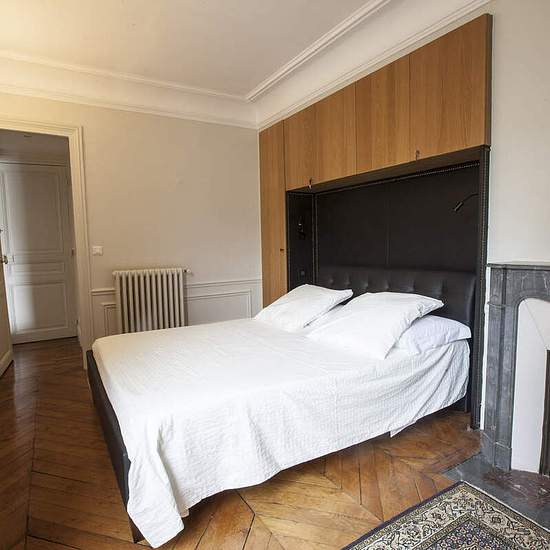 One-bedroom furnished apartment for rent in the 8th administrative district of Paris on Rue du Colisee. This flat with an interesting design will be a good residence option for a couple. Surface - 45 square meters; 4th floor of a building; parquet flooring; quality home appliances; storage clothes and other things. Number of residents - 2 persons. Layout: a living/dining room with a sofa, a fireplace, a dining table, shelves; a bedroom with a comfortable double bed; an equipped kitchen; a bathroom; a small hallway. The apartment is locat...