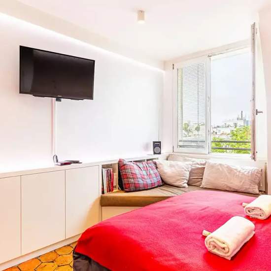 This modern studio apartment in the 5th arrondissement is perfect for couples looking to stay in the city centre. It has everything you need for a pleasant stay. The property is close to various attractions (e.g. Sainte-Chapelle, Notre-Dame), good restaurants and shops, and the Cluny La Sorbonne metro station is just 2-mins away, so guests can easily travel and explore the city! The space Welcome to my apartment! Modern and tastefully decorated, this lovely apartment is close to various top attractions in Paris, such as Sainte-Chapelle and N...