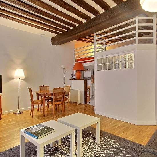 [FR] Cet appartement de 36 m² , une mezzanine (10m2). Alcove Studio, est situé rue de la Huchette dans le 5ème arrondissement , au 2ème étage d'un immeuble du 18ème siècle sans ascenseur et il peut accueillir 2 personnes. Cet appartement est équipé avec : un lave linge, un lave-vaisselle, la télévision, un accès internet haut débit illimité avec le wifi, les chaines cablées. L'immeuble du 18ème siècle sans ascenseur est équipé avec : un code d entrée, un interphone, une clé magnétique. [EN] This 36 m² apartment, with a mezzanine (10m2). Alco...