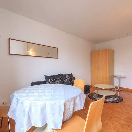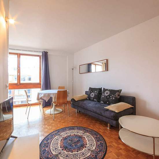 Nice one-bedroom apartment for rent in the 5th arrondissement of Paris on Rue Pierre Nicole. Not very large but cozy accommodation in a good area of the city - a suitable housing option for those who are going to spend vacation or a longer time in the French capital. 8th French floor in a building with elevator; surface - 41 square meters; comfortable furniture. Layout: a living room with sofa bed, TV, dining table, chairs, coffee table, wardrobe; a bedroom with double bed; a kitchen; a shower room with WC. Location. The 5th arrondissemen...