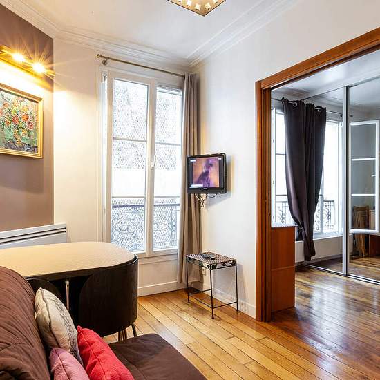 Want to find a comfortable place at a reasonable price in Paris? You can experience living in a fully renovated, furnished 1-bedroom apartment at Rue de la Collegiale (5th district). Although small, the flat situated in the Latin Quarter is very light and cozy. Surface - 32 square meters; capacity - three people; wooden flooring; the 4th floor; elevator. The living\dining room with a sofa, a dining table, chairs, TV, a coffee table; the bedroom with a double bed, a fireplace, a mirror; a fitted kitchen; the bathroom. The apartment has a v...
