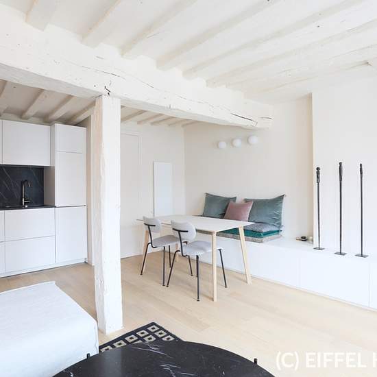 Magnifique appartement meublé refait à neuf situé rue Mazarine à deux pas de la place de l’Odéon et de la rue de Buci avec ses commerçants et restaurants. L’appartement a bénéficie d’une rénovation complète haut-de-gamme par un architecte d’intérieur. Situé au 5ème étage (pas d’ascenseur), il se compose d’1 entrée, 1 vaste séjour très lumineux, 1 coin cuisine entièrement équipé, 1 chambre avec sa salle d’eau, 1 WC séparé. Nombreux rangements. Double vitrage. Chauffage et eau chaude individuels électriques.