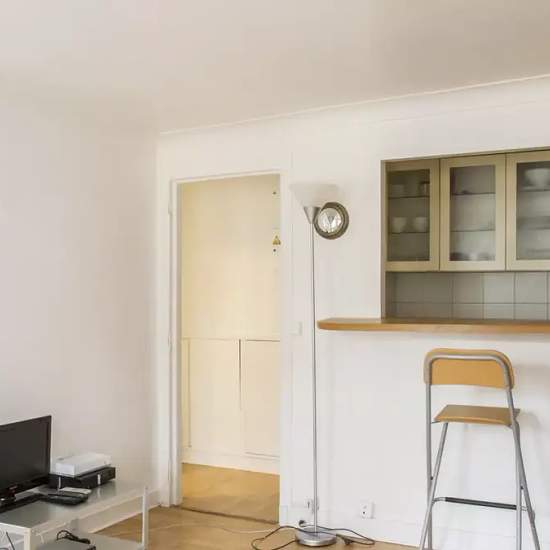 This sun-lit 32 m², 1-bedroom apartment is available to rent in the charming 6th arrondissement. On the 4th floor, you have large windows that provide great views of the neighborhood. There is a semi-open kitchen and living room with a service window – perfect for entertaining and easy clean-up. The kitchen is fully equipped, and the living room has a couch, dining table, and shelving. The exterior bedroom is also quite bright and has an en-suite bathroom. On Rue Saint-Sulpice, you are surrounded by the vibrant atmosphere of Paris's 6th arro...