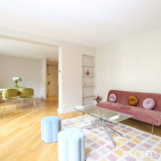 Très bel appartement en excellent état, loué meublé, situé Rue Saint Dominique au niveau de la Fontaine de Mars à côté de la rue Sédillot et du boulevard de La Tour-Maubourg. Proche des stations de métro La Tour Maubourg (ligne 8) et École Militaire (ligne 8) et Pont de l’Alma (RER C) Situé au 3ème étage (avec ascenseur) cet appartement a bénéficié d’une rénovation complète en 2022. Mobilier récent, soigné et contemporain. D’une surface de 66m2, l’appartement se compose d’une entrée, d’un grand séjour avec une partie salle à manger (3 gran...
