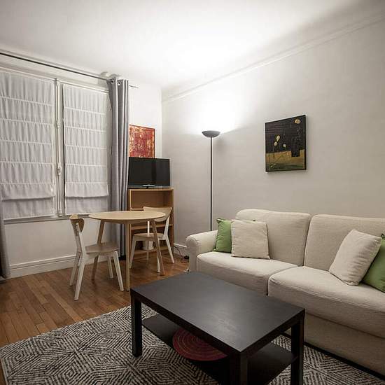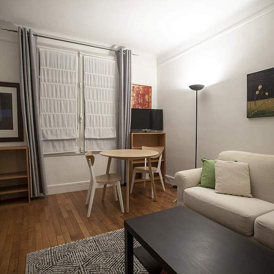 Very cute and comfortable 1-room apartment for rent at Rue Saint-Dominique in the 7th arrondissement of Paris. This furnished studio would be an excellent long-term residential option for a young couple in a very nice neighborhood. Surface - 30 square meters; 1st French floor of a building with elevator; parquet flooring; nice furnishing; stylish interior. Living room has a sofa, a dining table, chairs, a coffee table, TV, storage lockers. Equipped kitchen. Bathroom with a bath and a washbasin. Separate toilet. Corridor. If we talk about ...