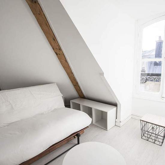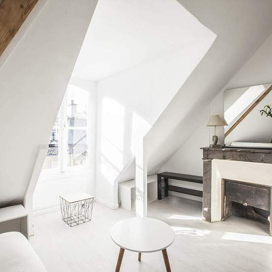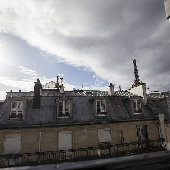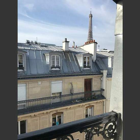 We offer you a cosy 1-room flat on Rue de Grenelle, located in the 7th arrondissement of Paris. This studio has a very small surface - just 12 square metres, but it's with a beautiful view of the Eiffel Tower from a large window. The flat is available for long-term rentals and is situated on the top floor (7th) of the building with elevator. Interior of the studio is quite original - with a sofa, a decorative fireplace, a coffee table, shelves and a mirror. The kitchen space is equipped with a refrigerator, a sink, a microwave and a coun...