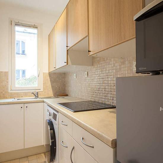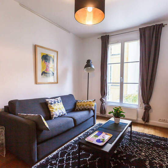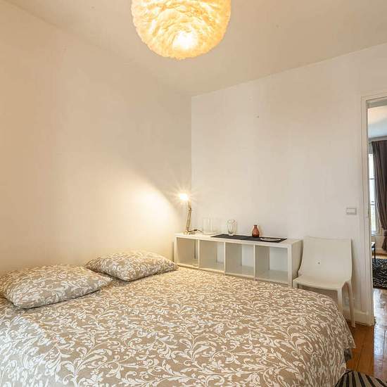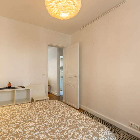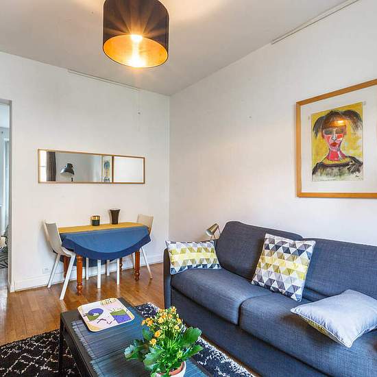 Light furnished 1-bedroom apartment for long-term rent on Rue Augereau in the 7th arrondissement of Paris. Cozy flat for a couple in a very good quarter of the French capital near Champs de Mars. Surface - 33 square meters; 1st French floor of a modern building. The apartment’s layout: a living room with a sofa, a table, chairs, TV; a bedroom with a double bed and a wardrobe; an equipped kitchen; a bathroom; a small entrance hall. The apartment is located in a convenient area in Paris near Champs de Mars, Eiffel Tower, the Seine, Trocade...
