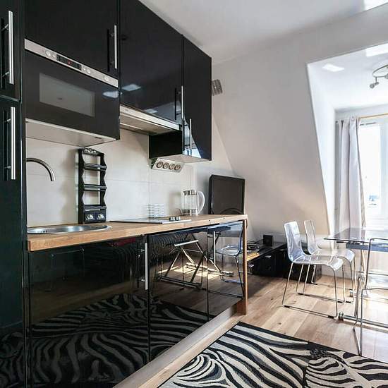 Cute 1-bedroom flat for rent on Avenue Elisée Reclus in the 7th administrative district of Paris. Cosy & furnished apartment for a couple or a family with a child in a very nice neighbourhood of the French capital. Living area - 25 square meters; 7th floor of the building; pleasant modern interior. Maximum number of occupants - 3 people. Layout: living room with sofa, table, TV; open equipped kitchen; bedroom with double bed, wardrobe, shelves, desk; shower room. Excellent location just a short walk from the Champ de Mars, the Eiffel Tow...