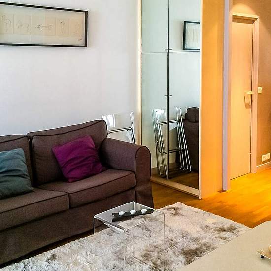Comfortable furnished 1-bedroom apartment for rent at Rue Beaujon in the 8th arrondissement of Paris. This is a good option for long-term residence in a cool area of the French capital just a short walk from Arc de Triomphe. Pleasant interior; quality furniture and household appliances; 5th floor of a residential building with elevator and concierge; balcony. Minimum stay period - 10 months. Layout of the flat: a living room, a fully equipped kitchen, a bedroom, a dressing room, a hallway, a bathroom, WC. The apartment is situated in an ...