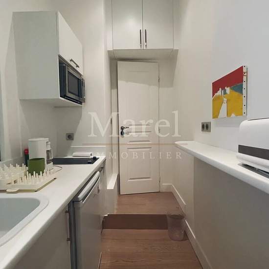 Exclusivité. Métro Cadet (ligne 7). Au rez-de-chaussée sur cour d'un immeuble ancien, ce studio loué meublé vous séduira pour son bel aménagement par Architecte. Il comprend une entrée, une pièce principale, une cuisine semi-ouverte, une salle de douche et un WC. Chauffage et eau chaudes individuels électriques. Ce bien est disponible immédiatement. Les dossiers avec garants ou Garantie Visale sont acceptés. Honoraires locataire pour une location « habitation principale » : 331,05€ (dont : - Visite, constitution dossier, rédaction de bail : ...