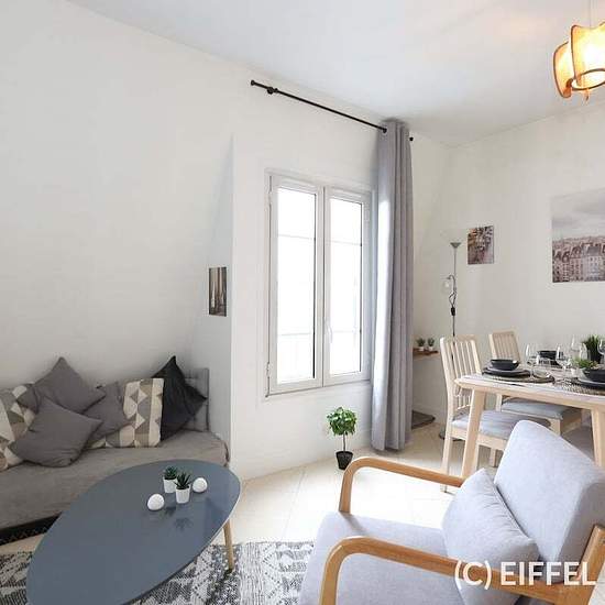 Bel appartement loué meublé situé Place d’Anvers, avec une vue dégagée sur le square, sur la Tour Eiffel et le Sacré Coeur. Proche de la Rue des Martyrs et ses nombreux commerces. L’appartement se situe à proximité des stations de métro Anvers (ligne 2), Barbes-Rochechouart (ligne 2 et 4) et Pigalle (2 et 12). Appartement en excellent état. Mobilier neuf. Au 6ème étage avec ascenseur, cet appartement de 31m2 se compose d’une pièce principale avec coin chambre, salle à manger et cuisine américaine équipée (sauf lave-vaisselle). Un coin bure...