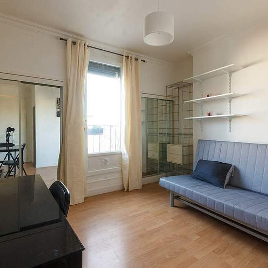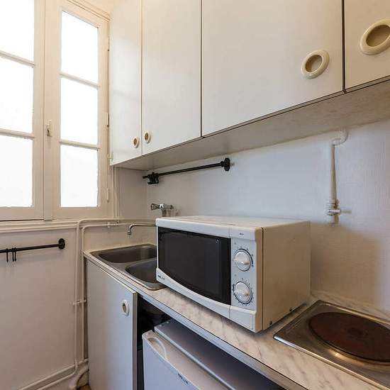 Small 1-room apartment for rent at Rue des Martyrs in the 9th arrondissement of Paris. It's a compact studio close to Montmartre for a couple that can be used for a long-term period of time. Surface of the studio - 17 square meters; 6th floor of a building. Living room has a sofa bed, a coffee table, shelves, a table, chairs; kitchen; shower room with WC. The apartment is located next to Place Pigalle and Montmartre, not far from Sacré-Coeur and Galeries Lafayette. Metro: Saint-Georges