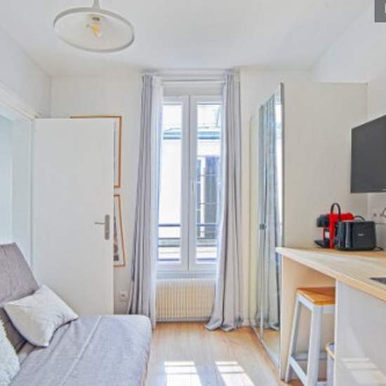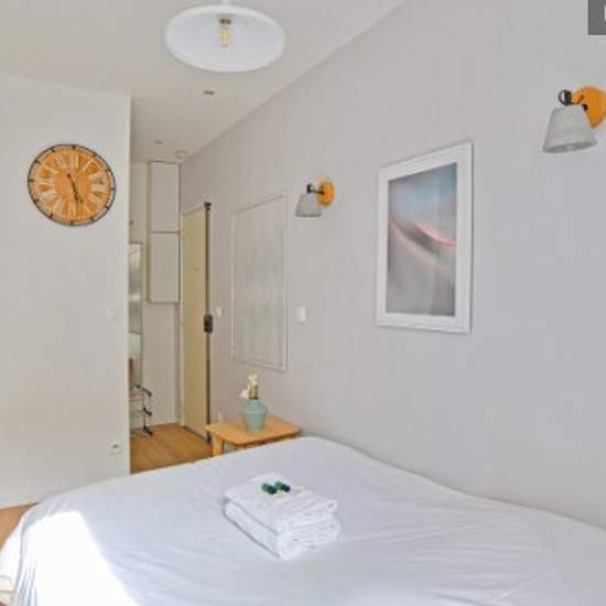 Cet appartement de charme, bien équipé et idéalement situé, peut accueillir jusqu'à 2 personnes. Proche de commerces et des transports, ce logement sera parfait pour votre prochain séjour parisien. Ce joli studio de 16m² est situé au 1e étage (sans ascenseur) et se compose de : - un espace de vie spacieux avec un canapé-lit, - une cuisine bien équipée (machine à café, grille-pain, plaques de cuisson, réfrigérateur, congélateur) - une salle de bain avec douche, - aspirateur, sèche-cheveux, - TV, Wi-Fi. → Un ménage de qualité hôtelière est eff...