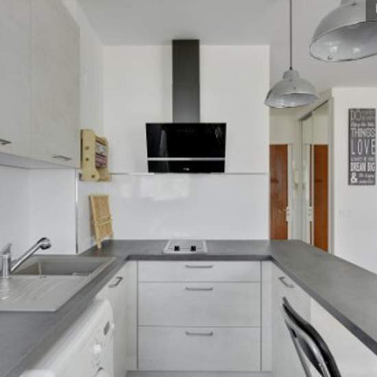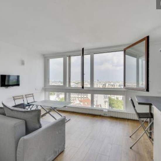 Superbe studio alcove moderne et refait à neuf sur 35 m2 avec un grand lit double. Idéalement situé dans le quartier recherché de Montparnasse, Paris 14ème arrondissement. Cet appartement est au 12ème étage avec ascenseur d'une résidence, boulevard Edgar Quinet. Supplément de 30€/Jeu de linge sur demande