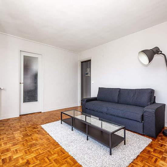 Light furnished studio for rent on Rue Maurice Loewy in the 14th arrondissement of Paris. It's a quite comfortable apartment for two persons in the southern part of the city near the famous Parc Montsouris, - available as for short as long-term stays. The studio has a surface of 26 square meters; 7th floor of a building with elevator; terrace; view of Eiffel Tower; parquet flooring. Living room with a big window, a sofa bed, a wardrobe, a coffee table, a TV set, lamps. Equipped kitchen (a refrigerator, an electric stove, an oven, a toaster...