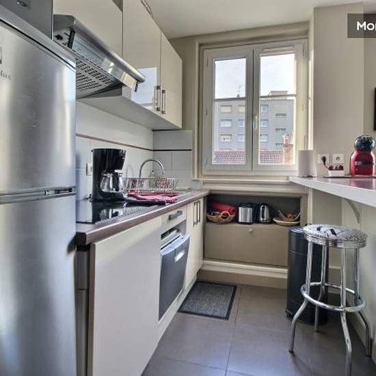 This 38.70 m² furnished T2 flat is located in rue Pierre Mille, close to shops and public transport. This property is located on the 2nd floor, accessible by lift, of a secure 1930 building. FEATURES: -an entrance hall leading to a kitchen opening onto the living room -a hallway leading to a bedroom -a shower room with WC. Fittings : Oven, hob, extractor fan, fridge, dishwasher, washing machine Communal heating, individual hot water Advantages : quiet, bright In addition to the rent ** (in euros) Security deposit: €2960 Cleaning costs: €117 ...