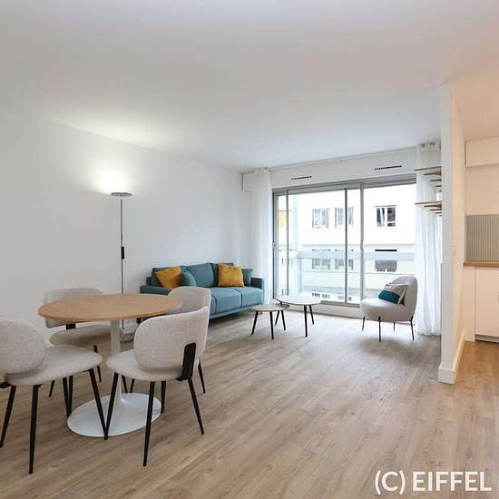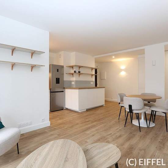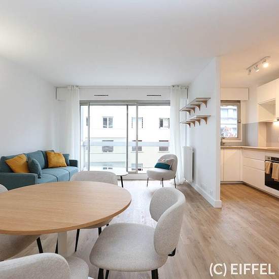 Bel appartement meublé, refait à neuf, situé rue Saint Saens (proche de la rue de la Fédération) dans le 15ème arrondissement de Paris. Proche des stations de métro Bir-Hakeim (ligne 6) et Champs de Mars – Tour Eiffel (RER C). L’appartement a bénéficié d’une rénovation complète par une architecte d’intérieur. Mobilier neuf, sobre et contemporain. Au 4ème étage (avec ascenseur), cet appartement de 53m2 se compose de: d’une entrée d’un grand séjour avec sa cuisine ouverte et entièrement équipée (26m2 au total) une chambre d’une salle de bai...