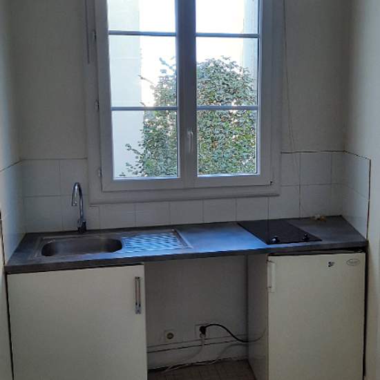 Proche Montparnasse, Rue Falguière. Dans un immeuble ancien, au 3ème étage sans ascenseur, agréable studio de 21,64m2 en bon état général comprenant une entrée, une pièce principale, une cuisine équipée (plaques de cuisson et réfrigérateur + branchement de machine à laver), une salle d'eau avec WC. Double exposition. Libre de suite.