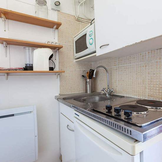 Furnished studio for long-term rent on Place du Commerce in the 15th administrative district of Paris. Compact apartment in a good neighborhood of the French capital - an affordable housing option for two persons. The studio's size is 12 square meters; 5th floor of the building with elevator; basic set of furniture and home appliances. The apartment is small, but quite comfortable and consists of: a living room with a bunk bed, a table, shelves, a closet for clothes and things; an equipped kitchen; a shower room with a shower. As for its...