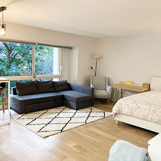 A LOUER 1 750 euros CC PASSY/ANNONCIATION Contact : Caroline Paris 16ème, quartier de la Muette, au coeur du Village de Passy, nous vous proposons à la location, un grand studio meublé de 38 m2 situé au 2ème étage avec ascenseur dans la résidence de Standing le «Passy Plaza», sécurisée avec gardien 24/24. Sur jardin, calme et lumineux, ce studio se compose de : entrée avec rangements, pièce principale avec cuisine ouverte, aménagée équipée avec de grandes baies vitrée, salle de bain avec WC, parquet Le bien est équipé d'un lit et d'un canapé...