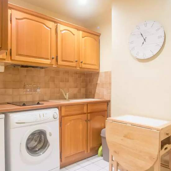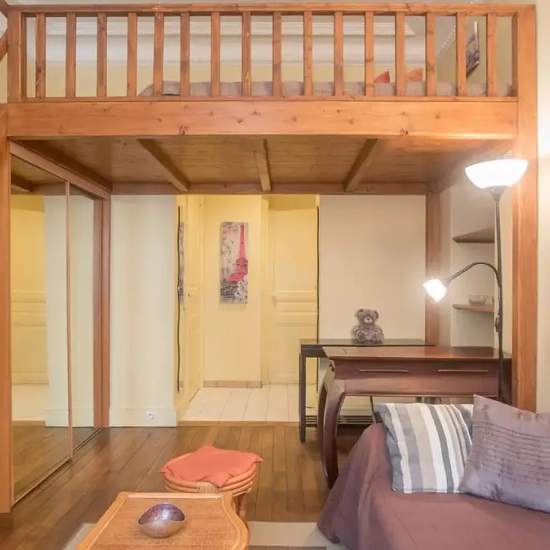 This cozy studio apartment in the 17th arrondissement is 35 m² and offers a double bed on a mezzanine level. The property is beautifully decorated and has an equipped kitchen and a tidy tiled bathroom. The apartment is located in a vibrant neighbourhood that offers all the amenities you could need during your stay. Bois de Boulogne is located nearby, and you can walk to the Arc de Triomphe and Champs-Élysées in 10 minutes. Details Property type: apartment Number of bathrooms: 1 Floor: ground Elevator: yes Floor area: 35 m² Insurance: not ...