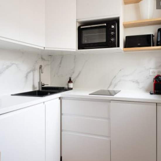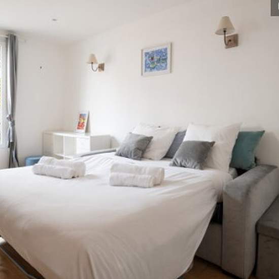 Profitez de ce studio lumineux de 24 m², niché au deuxième étage sans ascenseur, offrant une vue dégagée sur les toits de Paris. Avec une surface optimisée, cette location se compose de : - une pièce de vie baignée de lumière avec un canapé-lit et un espace repas, - une cuisine bien équipée (Machine à café, Grille pain, Bouilloire, Four, Plaques de cuisson, Lave-vaisselle, Réfrigérateur), - une salle de bain avec douche et WC, - Aspirateur, Lave-linge, Sèche-linge, Sèche-cheveux, Fer, - Wifi. Entièrement rénové en 2022, ce studio non fumeur ...