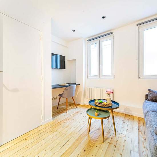 Le logement Ce logement est disponible pour un bail mobilité UNIQUEMENT. Le bail mobilité est un type de bail de location meublée de courte durée. Il vise à faciliter la mobilité des locataires, et notamment ceux amenés à déménager pour des raisons professionnelles (mutation ou mission), les étudiants, les jeunes en formation, en alternance ou en stage. Il s'agit d'un appartement de 30m2 situé au 2eme étage sans ascenseur. Il se compose de: - Une cuisine équipée et fonctionnelle : frigidaire, plaques de cuisson, machine à café, grille-pain, ...