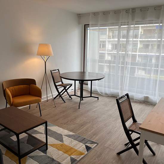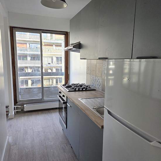 Rue de Saussure / Porte d'Asnières Dans immeuble récent, au 7ème étage avec ascenseur, beau studio meublé de 31,50 m2 comprenant: entrée avec grand placard, belle pièce principale avec baies vitrées sur grand balcon, cuisine aménagée et équipée et salle d'eau avec WC. Entièrement rénové. Chauffage et eau chude collectif. Possibilité de parking pour 130 EUR en plus. Disponible de suite.