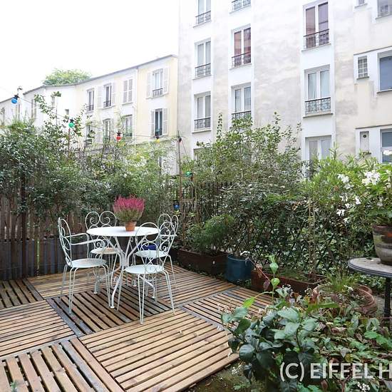 Magnifique studio avec terrasse privative, refait à neuf et loué meublé, en rez-de-chaussée (intégralement sur cour). Situé Rue Maurice Utrillo dans le 18ème arrondissement de Paris, à proximité immédiate de la Basilique su Sacré-Coeur de Montmartre, de nombreux commerces et restaurants. Proche du métro Abbesses (ligne 12). Ce studio de 29m2 avec sa terrasse privative de 15m2 se compose comme suit : un séjour (avec canapé convertible) et espace nuit, une cuisine ouverte entièrement équipée (plaques, lave-vaisselle, four micro-ondes, réfrigé...