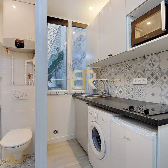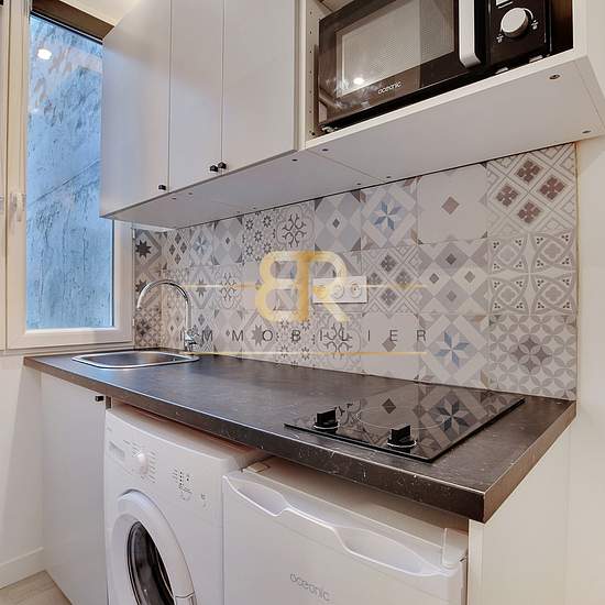 MARCADET POISSONNIERS- A 200m du métro, au 1er et AVANT DERNIER étage d'un petit immeuble (parties communes rénovées il y a 1 an). Venez découvrir ce MAGNIFIQUE studio de 16 m2 carrez entièrement REFAIT A NEUF en 2023 avec matériaux de qualité , il se compose d'une belle pièce à vivre avec un canapé lit et sa cuisine entièrement ÉQUIPÉE (Lave linge, Four, Frigo avec espace congélateur, Plaques chauffantes,Micro ondes), une salle d'eau avec une douche et un WC. Cet agréable appartement est loué entièrement MEUBLÉ ( il n'y a qu'à poser ses val...