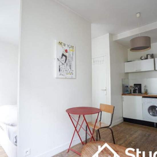 Le studio se trouve dans un quartier animé, juste au-dessus du Kiez Biergarten, un lieu prisé où se mélangent convivialité et ambiance décontractée. Dès l'entrée, vous êtes accueillis par un espace lumineux, optimisé pour une vie étudiante moderne. L'espace de vie : Le studio offre une belle pièce principale ouverte, équipée d'un canapé convertible, d'un bureau pour les études, et de rangements fonctionnels. De grandes fenêtres laissent entrer la lumière naturelle, offrant une vue agréable sur l'animation du Biergarten en bas, tout en offran...
