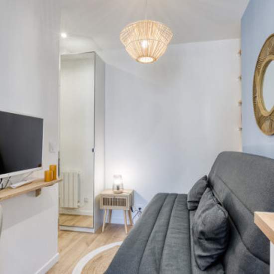 Quartier : Barbès / Rochechouart – à proximité immédiate de Montmartre et du Sacré-Cœur. Nous vous proposons ce studio meublé et équipé de 13 m², idéalement situé dans un quartier vibrant et parfaitement desservi du 18ème arrondissement. Situé au 6ème étage (sans ascenseur) d'un immeuble calme et sécurisé, cet appartement a été entretenu avec soin et décoré avec goût pour offrir tout le confort nécessaire. Caractéristiques du bien : - Surface : 13 m² - Statut : Meublé - Pièce principale : Espace de vie lumineux avec canapé convertible, range...