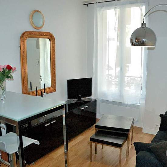This cosy one-bedroom apartment (30 m) is situated in the 18th district of Paris. It has up to 4 sleeping places and is located in the artistic area on the halfway from the Moulin Rouge to Montmartre. The apartment consists of two separate rooms, it has an open kitchen and a bath. Bright and spacious, quiet and warm. The living room is furnished with a sofa-bed, a coffee table and a stand with a TV. There is a big window and a stylish lampshade. In the bedroom there is a big double bed with two bed-side tables, a bookcase and a built-in c...